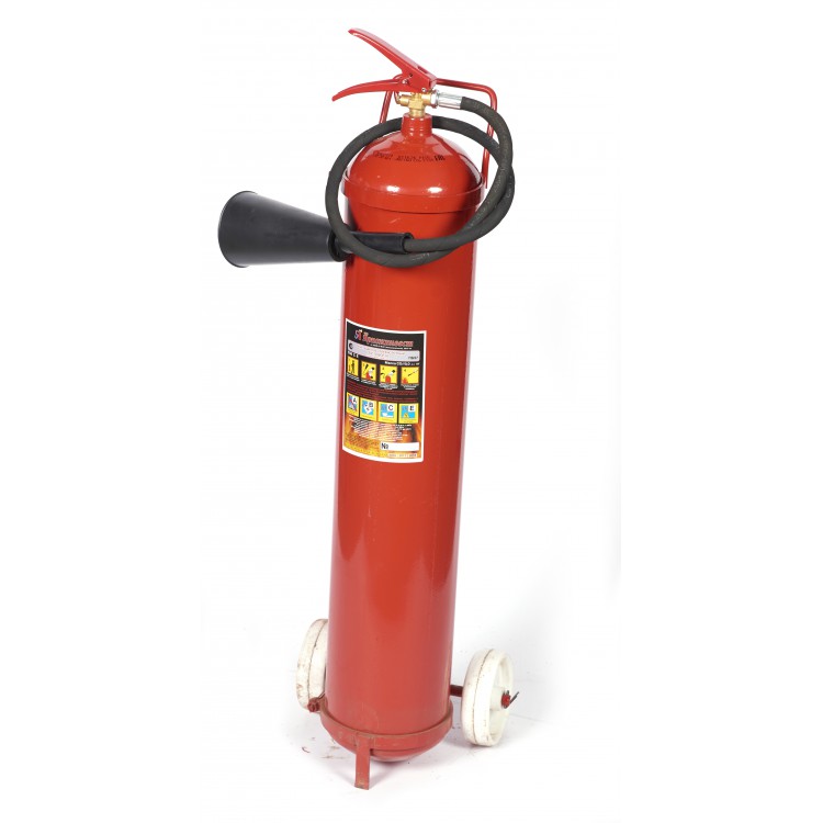 Огнетушитель углекислотный, передвижной (ОУ). Необходим для борьбы с возгоранием (пожаром), которое невозможно без доступа к кислороду. Объём 13.4 л, масса 35 кг.